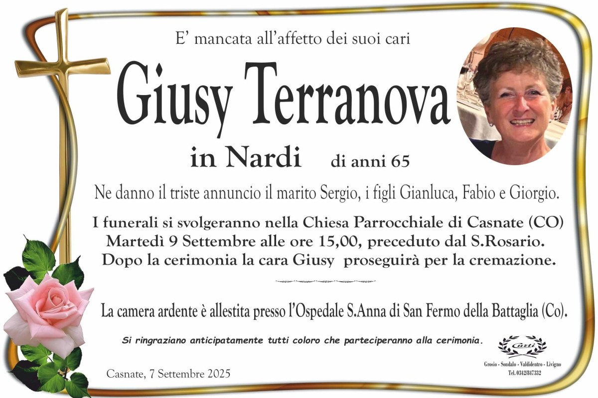 Lascia un messaggio di cordoglio, lo recapiteremo ai familiari di TERRANOVA GIUSY