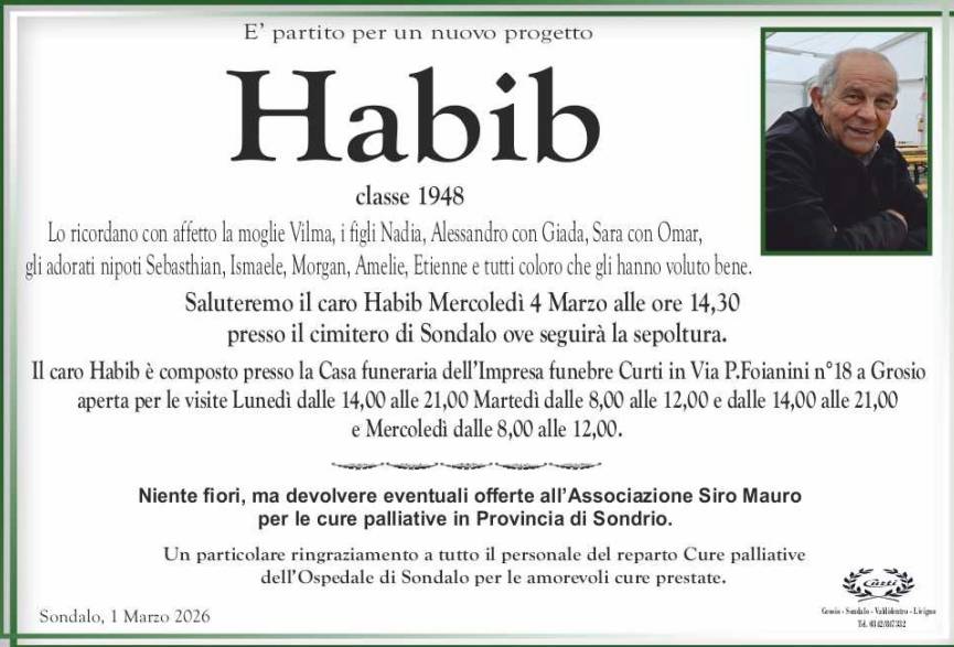 Lascia un messaggio di cordoglio, lo recapiteremo ai familiari di zallouz habib