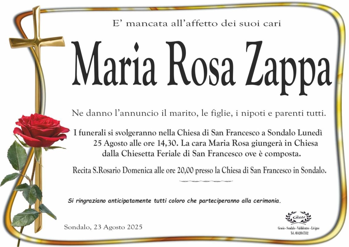 Lascia un messaggio di cordoglio, lo recapiteremo ai familiari di zappa maria rosa