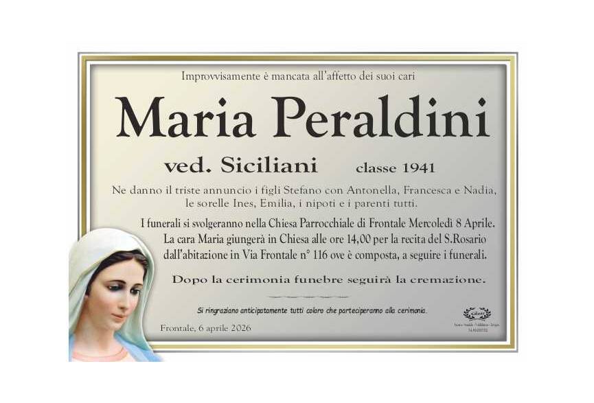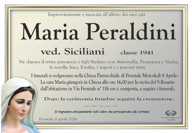Lascia un messaggio di cordoglio, lo recapiteremo ai familiari di peraldini maria