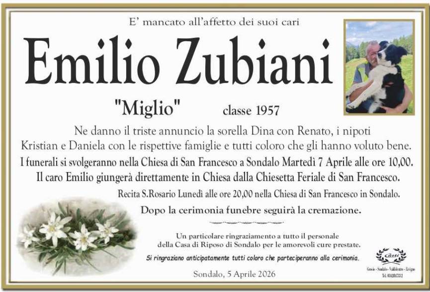 Lascia un messaggio di cordoglio, lo recapiteremo ai familiari di zubiani emilio